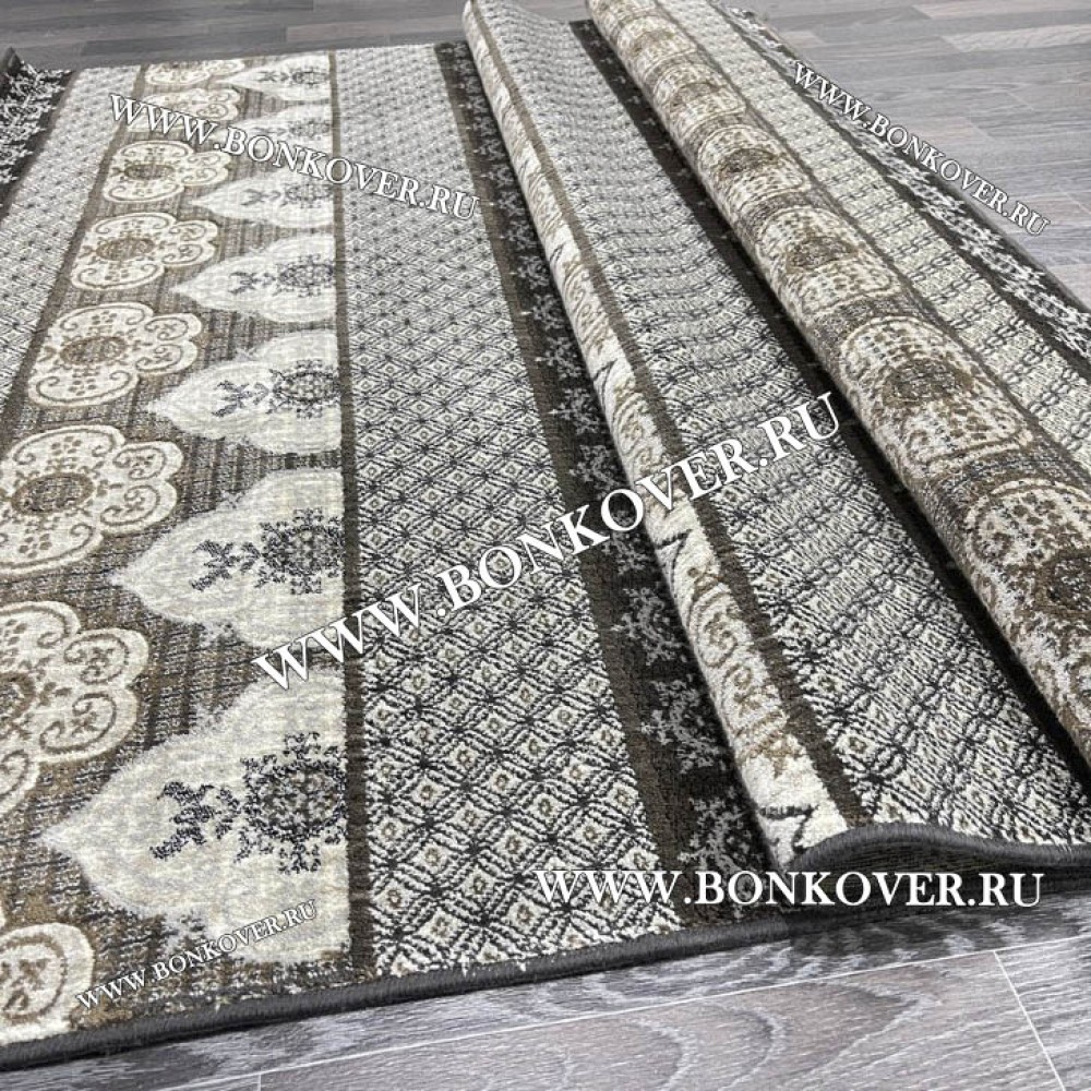 Красивый Бельгийский ковер из артшелка дизайн 128 Серый наполняет интерьер помещения теплом и уютом, гармонично сочетает в себе изящество и красоту. Он соткан из современных материалов, прочный и долговечный.