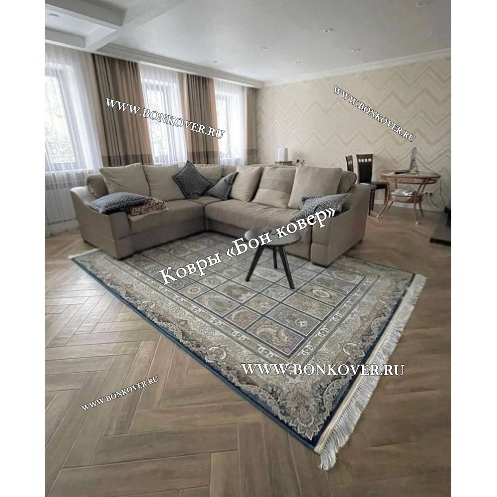 Иранский Ковер Для Гостиной Дизайн 30328 Синий станет великолепным преображением вашей комнаты, подчеркивая высокий статус владельца.