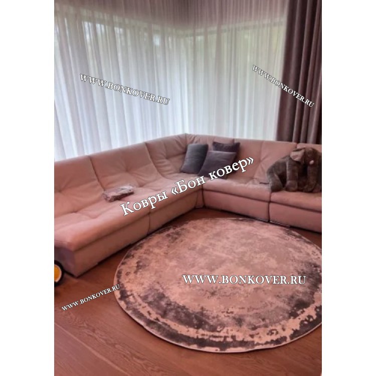 Турецкий Ковер Для Гостиной Дизайн 46 Бежево-Коричневый Круг