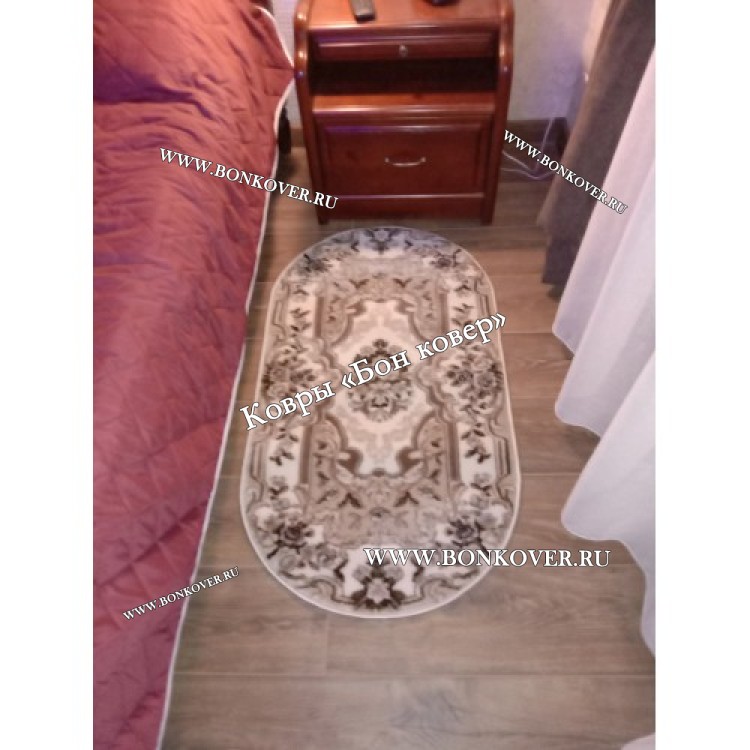 Очень хороший прикроватный коврик коричнево-бежевых тонов, в ближайшее время закажем токой-же размером 1,5×2,3 так-же в спальню. Не зря долго выбирали, только жаль что долго шёл.