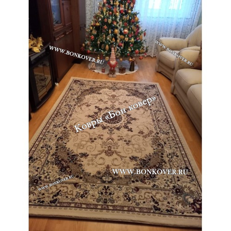 Ковер с восточным орнаментом арт 28568 станет привлекательным дополнением интерьера, оформленного в современном или классическом стиле. Мягкое, но прочное, ковровое покрытие обеспечивает тепло- и шумоизоляцию, отличается длительным сроком эксплуатации, надежностью, экологичностью и высокой износостойкостью, является отличным барьером от повышенной влажности в комнате и утеплителем для холодного пола. Благодаря качеству материалов, ковер не деформируется, сохраняет форму под тяжестью предметов мебели. За его поверхностью легко ухаживать.