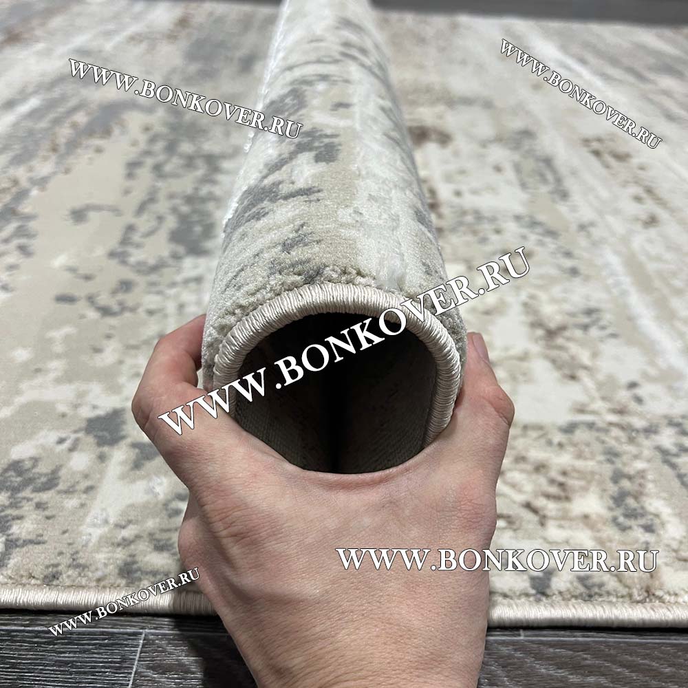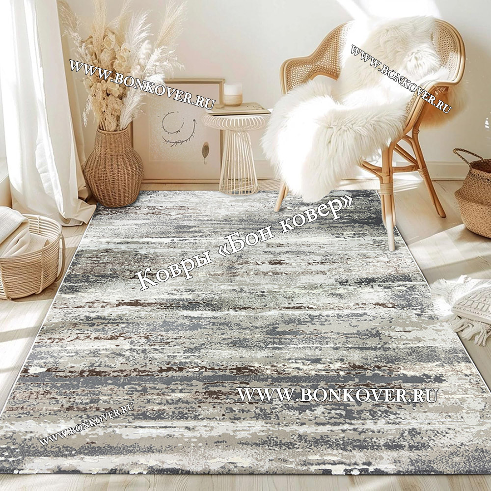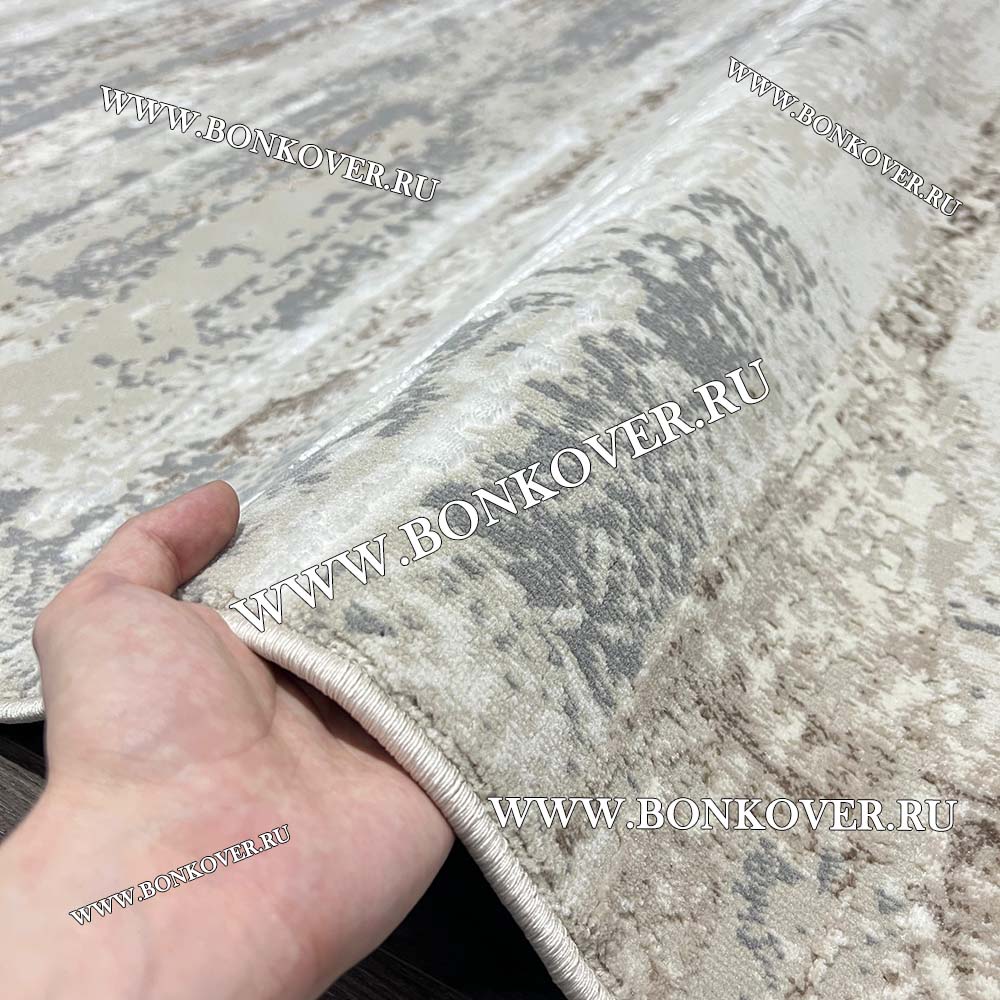 Импозантный Ковер Турция Современный Дизайн 26 Серый с Бежевым наполняет интерьер жилого пространства теплом и уютом, гармонично сочетает в себе изящество и стиль. Он соткан из износостойких материалов, комфортный и долговечный.
