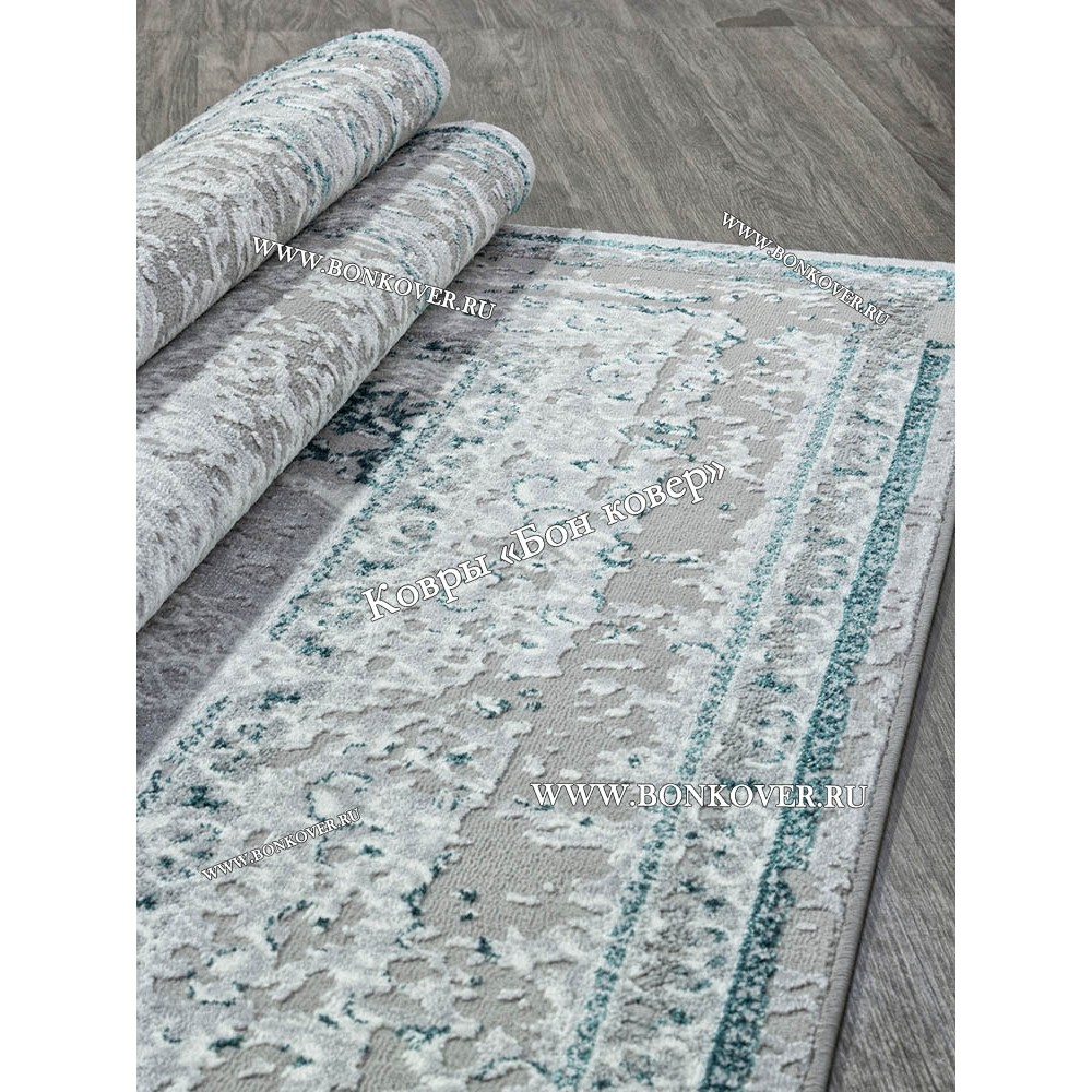 Изящный Современный ковер для комнаты 09 Бирюзовый наполняет интерьер помещения теплом и уютом, гармонично сочетает в себе изящество и стиль. Он соткан из износостойких материалов, комфортный и долговечный.