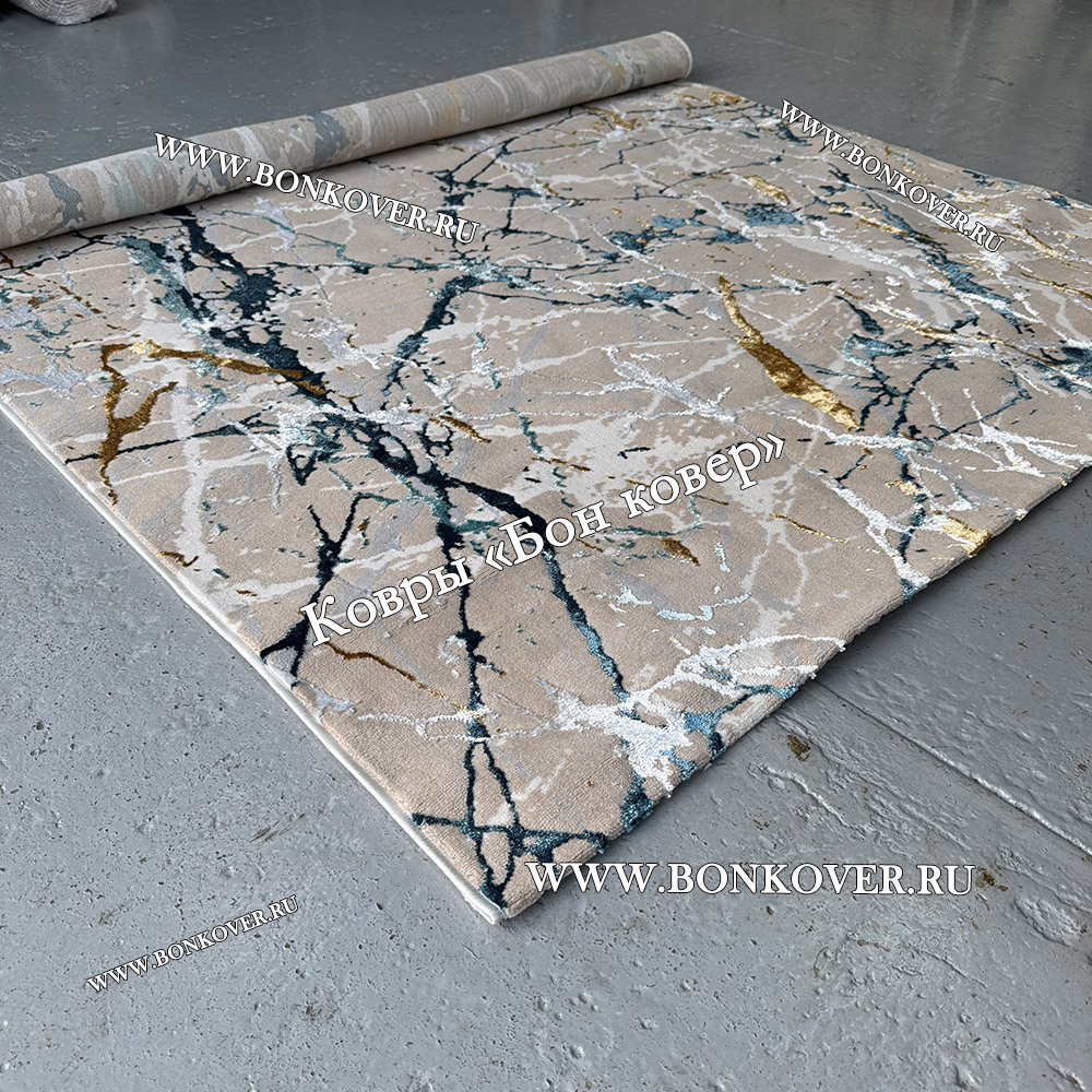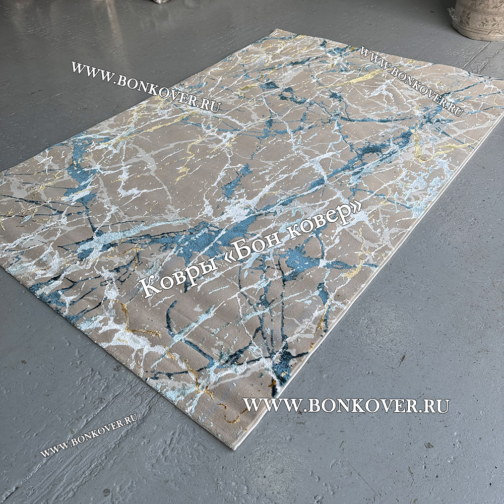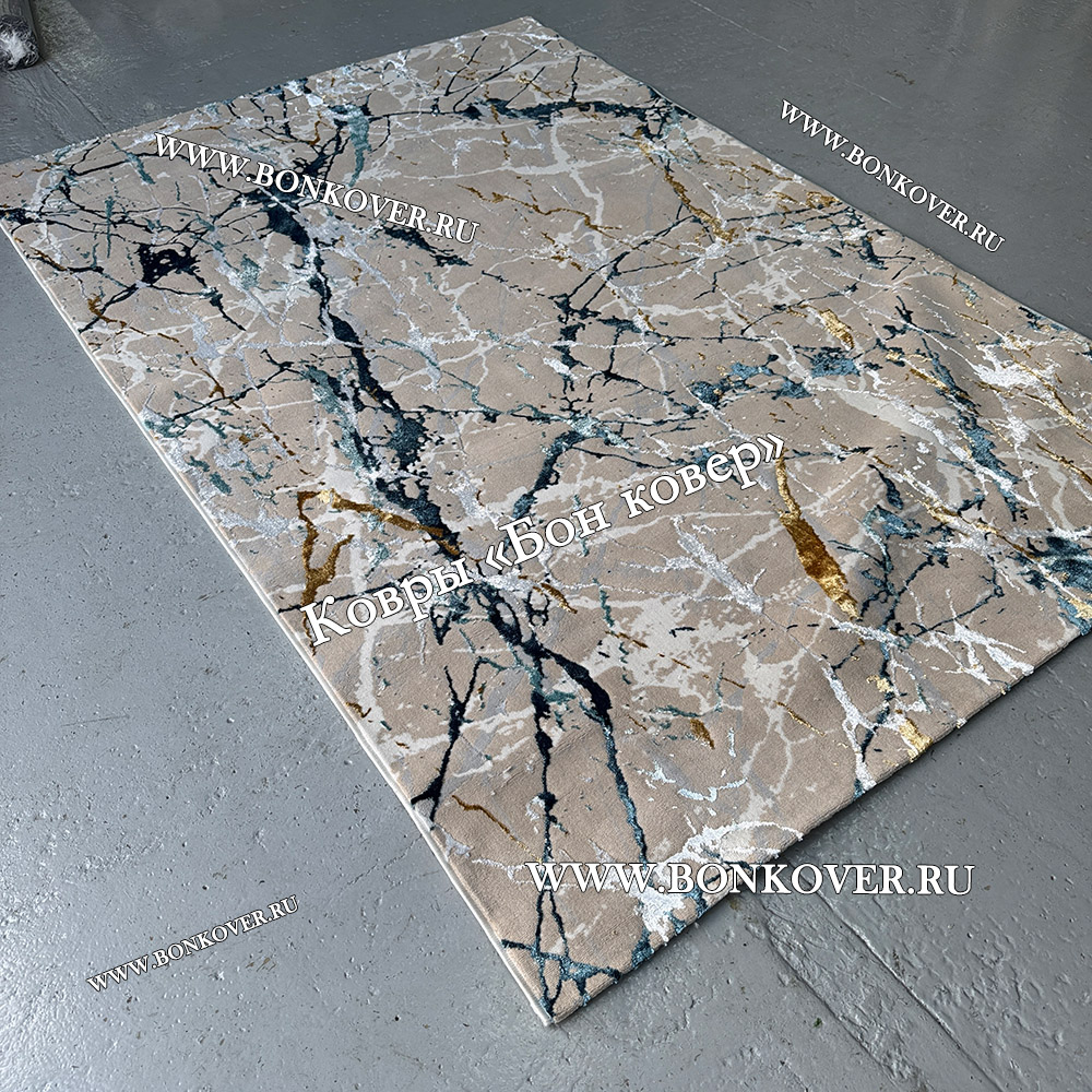 Турецкий Прямоугольный Ковер Бежевый с Золотистым дизайн 01