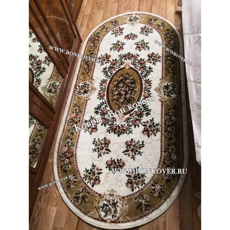 Классический ковер дизайн 104 Белый с бежевым Овал