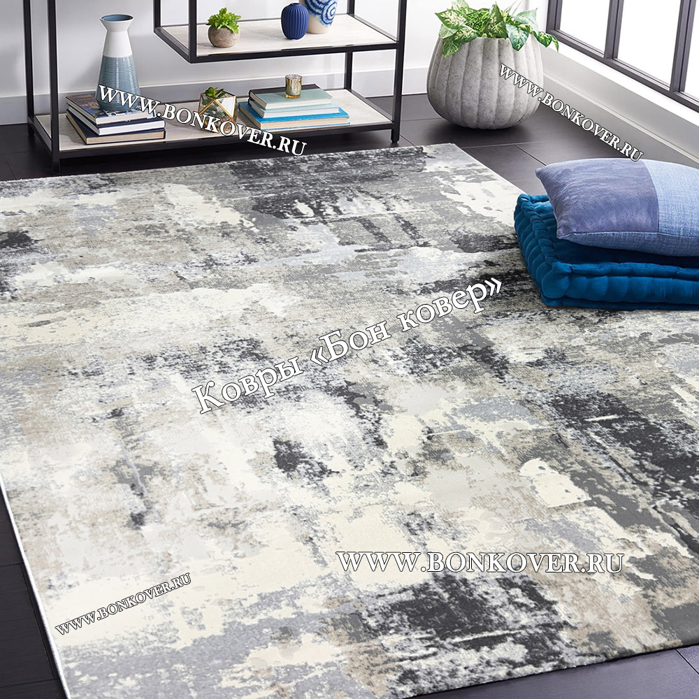 Красивый Турецкий Ковер Для гостиной дизайн 30034 Серый Абстракиция наполняет интерьер вашего дома теплом и уютом, гармонично сочетает в себе изящество и красоту. Он соткан из высококачественного сырья, комфортный и долговечный.
