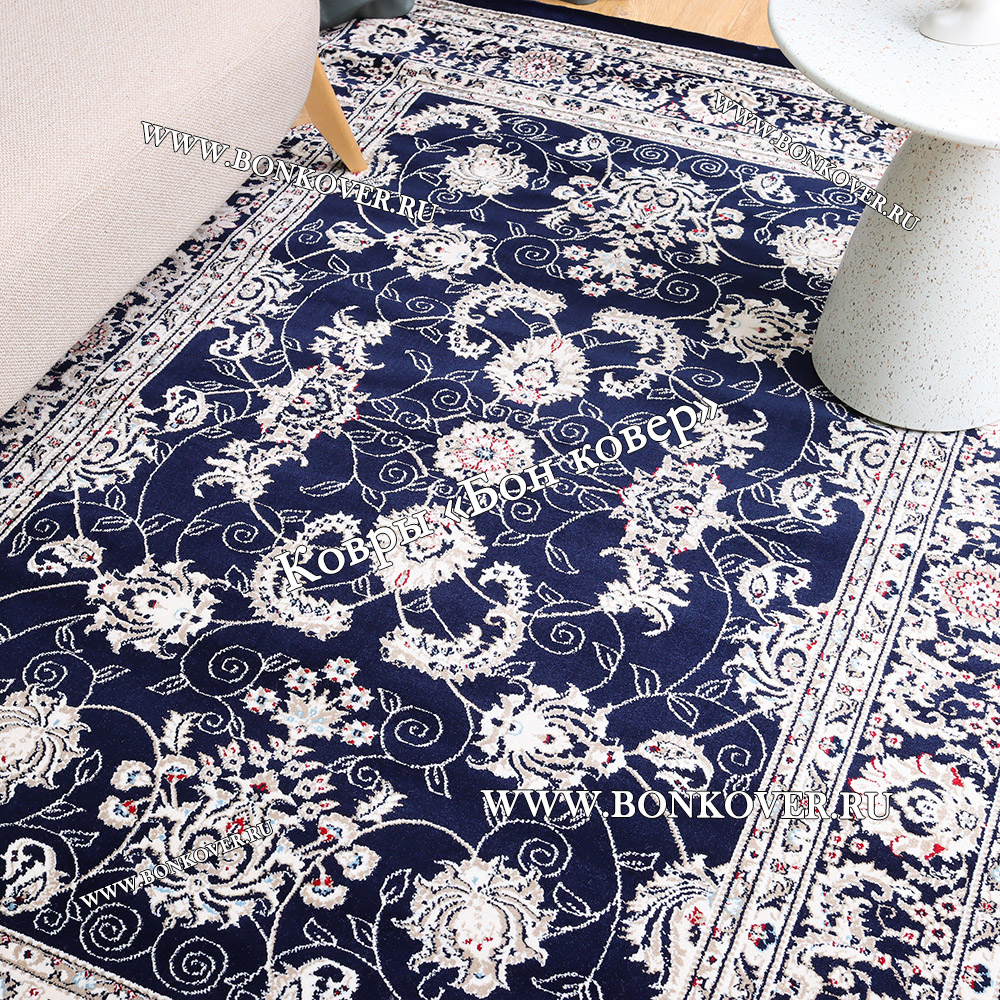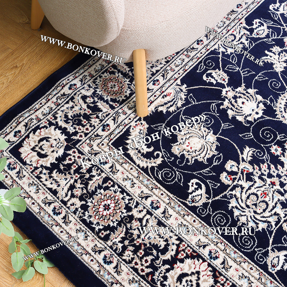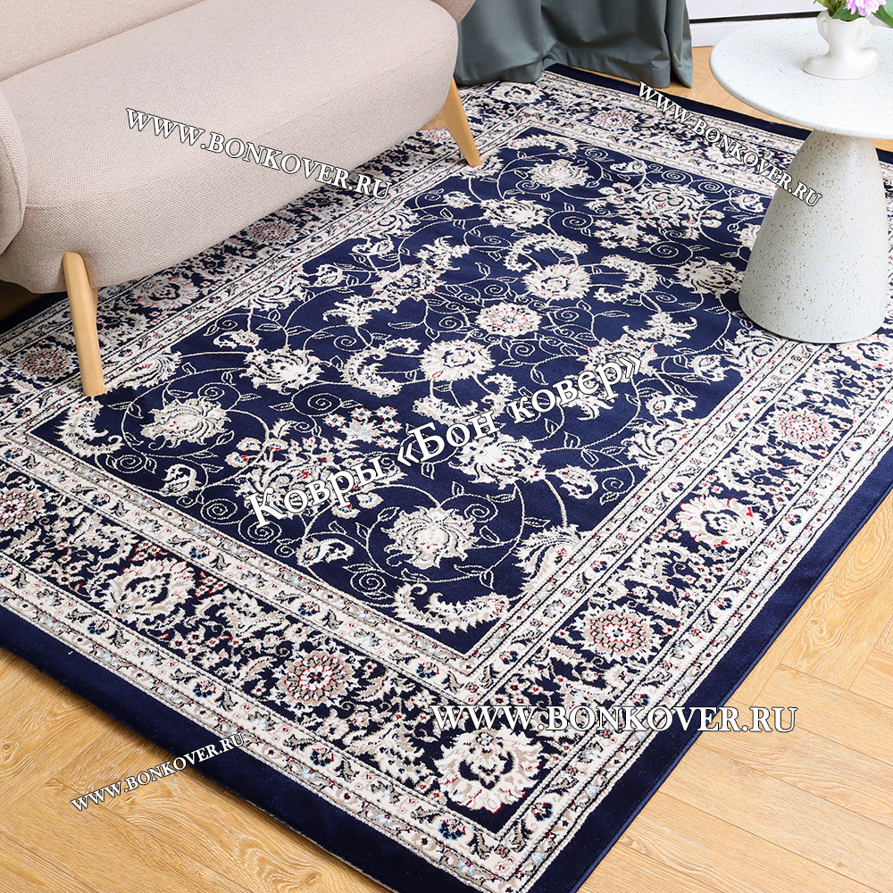Элегантный Турецкий Ковер Для гостиной дизайн 79 синий наполняет интерьер квартиры теплом и уютом, гармонично сочетает в себе изящество и стиль. Он соткан из высококачественных материалов, комфортный и долговечный.