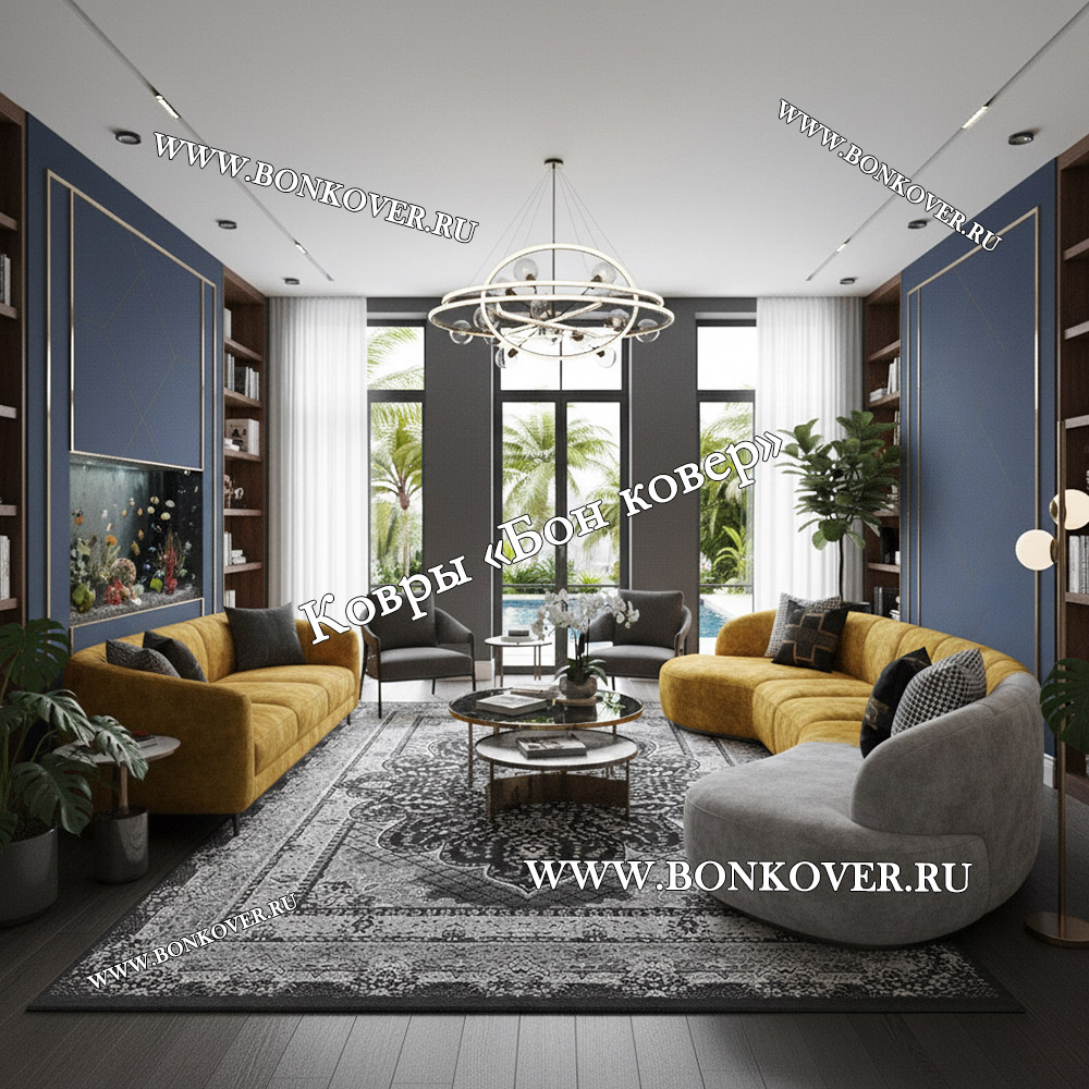 Турецкий Ковер Для гостиной New дизайн 373 Серый станет шикарным преображением жилого помещения, подчеркивая высокий статус семьи владельца.