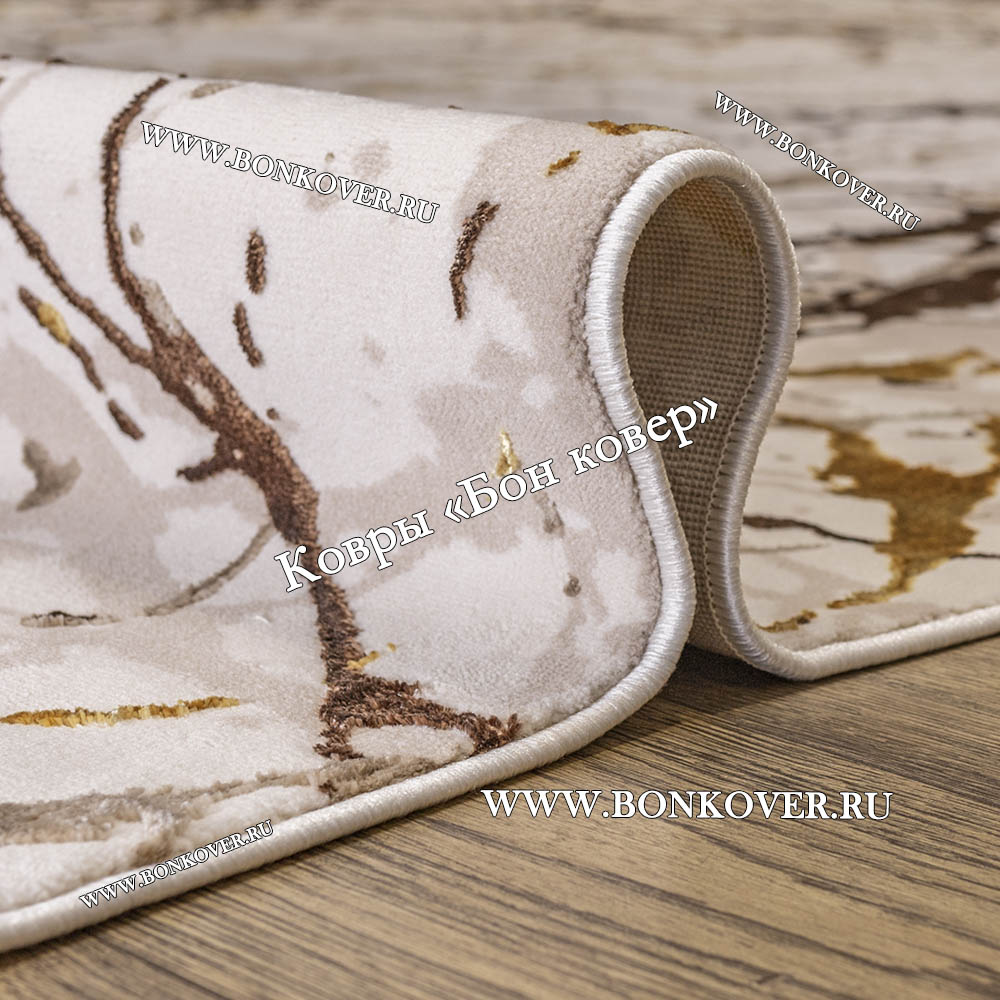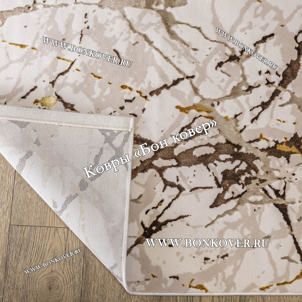 Турецкий Прямоугольный Ковер Бежевый с Золотистым дизайн 01